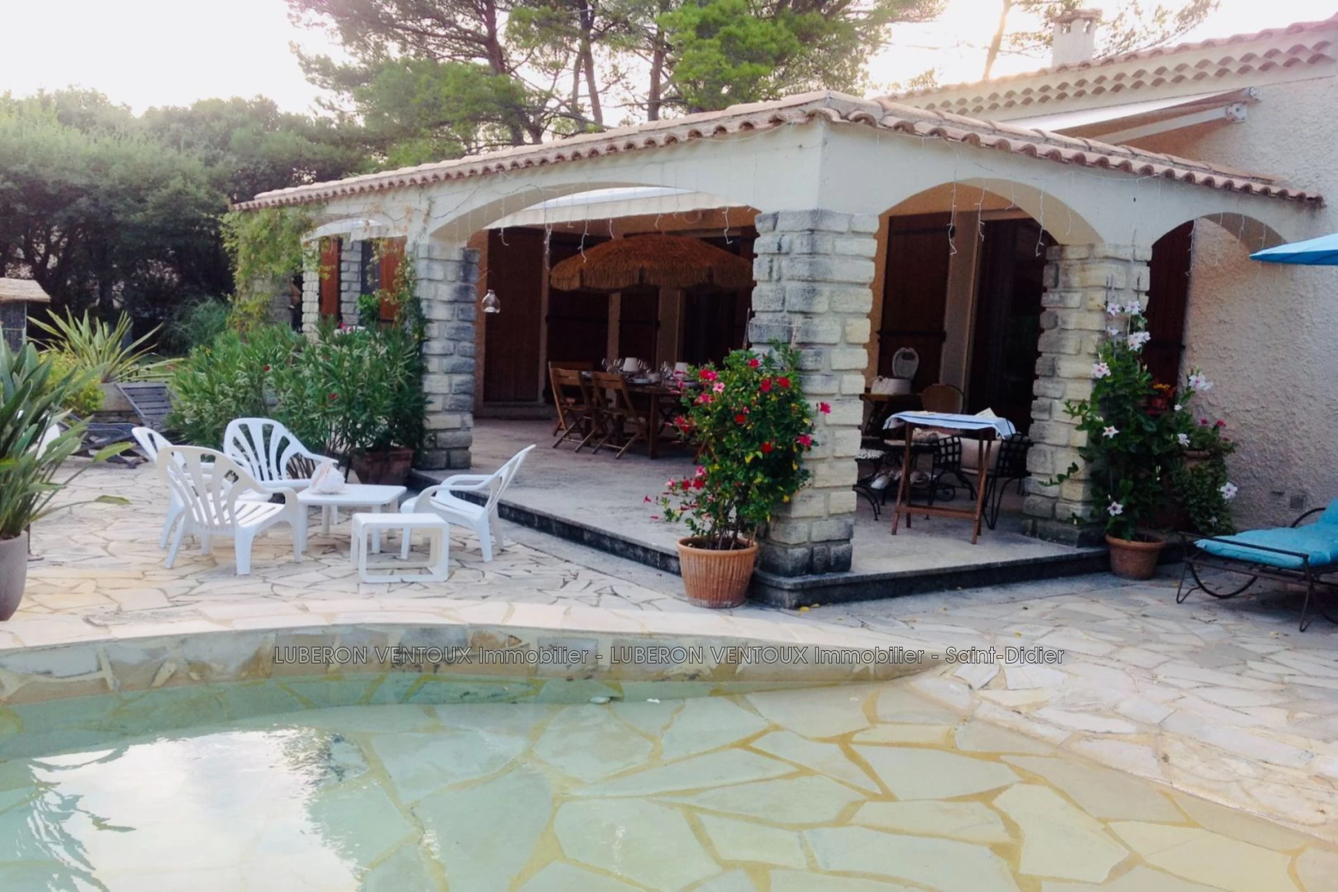 Venez découvrir cette très belle villa nichée dans un cadre de verdure au calme entre SAINT DIDIER ET PERNES LES FONTAINES.. D'une surface d'environ 193 m², elle se compose d'un très bel espace de vie de 50 m² avec cheminée, de trois chambres dont deux suites parentales et un bureau. Vous profiterez à l'ombre des chênes et de ce très joli parc paysagé d'une piscine et d'un pool house aménagés pour vous faire voyager ! Les dépendances deux grands garages et une pièce office avec la possibilité d'un agrandissement ou d'une construction ! Une pépite à visiter !! PERNES LES FONTAINES, SAINT DIDIER, VENASQUE, LA ROQUE SUR PERNES Pour cette référence 40768 Contact agence Saint Didier 04 90 51 13 58 Les informations sur les risques auxquels ce bien est exposé sont disponibles sur le site Géorisques : www.georisques.gouv.fr.
